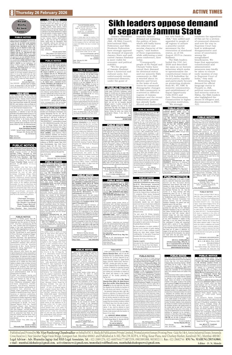 DN Shinde Active Times Feb 20, 2026 0 17