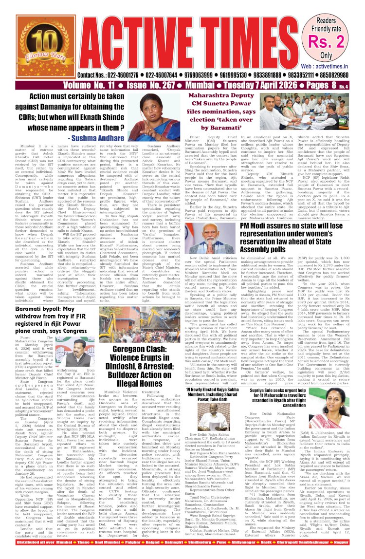 DN Shinde Active Times Apr 3, 2026 0 18